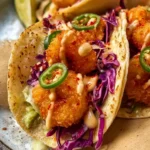 This recipe hits the sweet spot: crunchy shrimp, tangy slaw, and a creamy kick of sauce. It’s faster and cleaner than deep-fried versions but delivers the same satisfying texture thanks to a cornstarch-and-breadcrumb coating. Make it on Taco Tuesday, for a low-stress weekend lunch, or when guests drop by — it scales easily.