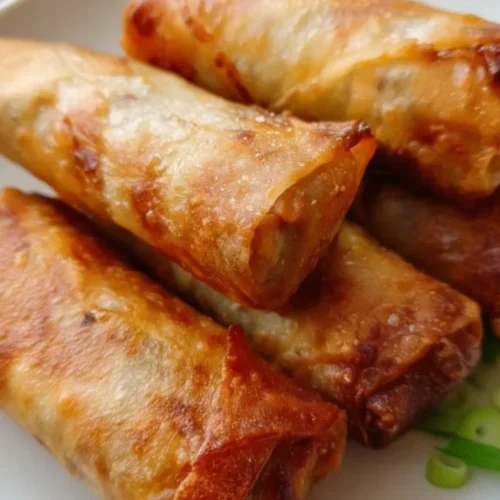 Serve hot with one or more dipping sauces: sweet chili, soy-sesame, peanut sauce, or a simple mix of soy sauce and rice vinegar. For a full meal, plate several spring rolls on a bed of lightly dressed mixed greens and a side of jasmine rice or quick cucumber salad. These also pair nicely with bold mains—try serving them alongside this popular air-fried bang bang chicken for a textural contrast.