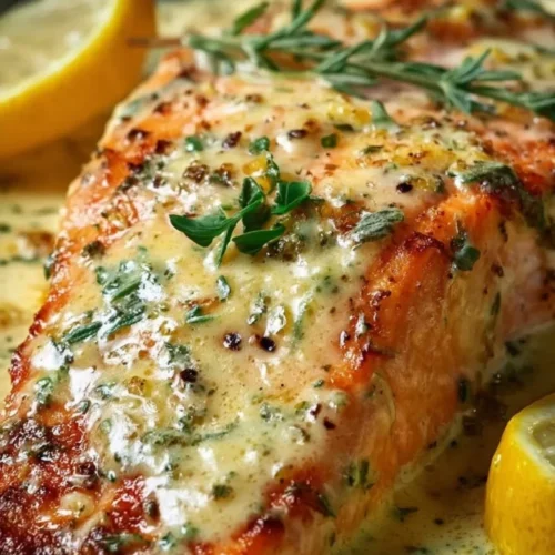 This dish is simply salmon fillets baked in the oven and finished with a lemon-infused butter and cream sauce. The cooking method is straightforward: season the fish, pour the warm lemon-butter-cream over the fillets, then bake until the salmon flakes easily. Flavor-wise, expect rich, buttery notes softened by bright, acidic lemon juice and a hint of lemon zest that lifts every bite. It’s commonly served as a cozy weeknight entrée, an impressive but low-fuss dinner for guests, or as part of a relaxed weekend meal. The overall vibe is comforting and refined — homey enough to make any night feel special.