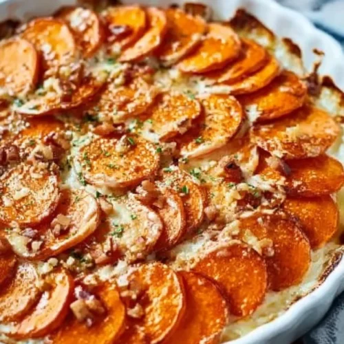 I grew up with more than one version of sweet potatoes at the holiday table, but this scalloped sweet potato recipe—thinly sliced medallions baked in a buttery brown-sugar-spice glaze and finished with toasted marshmallows and pecans—always disappears first. It’s cozy, slightly caramelized, and easy enough for a weeknight yet pretty enough for a holiday spread. If you’re curious about potato varieties, purple types like Murasaki bring a striking color and slightly firmer texture to the dish: https://savorousrecipe.com/murasaki-sweet-potatoes-the-delicious-superfood-you-need/.