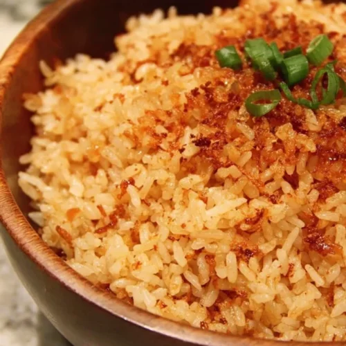 - Transfer the crispy rice to a serving platter, garnish with extra scallions, and serve warm.