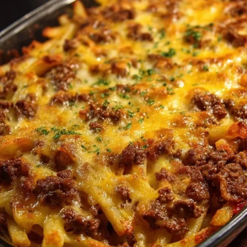 This casserole brings together two universally loved foods — cheeseburgers and fries — into a single bake. It’s quick to assemble, uses pantry and freezer staples, and stretches easily to feed a family. Perfect for busy weeknights, potlucks, or when you want a low-effort dish that still feels indulgent.