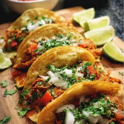 These tacos take the spirit of carnitas — citrus-forward, tender meat — and adapt it to shredded chicken that’s accessible and fast. The roll-and-bake method makes crisp, handheld tacos without deep-frying, and the avocado crema adds cooling richness that balances the citrus notes.