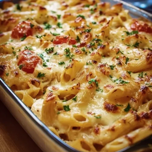 This pasta bake is the kind of recipe people save and send to friends: it’s fast to assemble, uses pantry staples, and tastes like something you’d order at a cozy diner. The cream cheese gives it a silky backbone, ranch dressing adds classic tang, and bacon brings smoky saltiness that kids and adults both tend to crave.