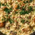This creamy chicken and rice skillet is everything you want in a cozy meal—rich, hearty, and satisfying, yet simple enough for busy weeknights. The tender chicken, savory mushrooms, and creamy sauce make it a true family favorite. Whether you’re cooking for a crowd or just need a comforting dinner, this one-pan wonder delivers flavor and warmth every single time.