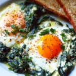 A creamy, skillet-ready dish that folds bright wilted spinach into tangy Greek yogurt and bakes soft eggs right on top — perfect for a quick weeknight dinner or a relaxed weekend brunch. This Creamy Spinach and Eggs recipe hits the sweet spot between simple and satisfying: minimal ingredients, fast cook time, and a silky texture that pairs beautifully with crusty bread. If you like spinach-forward mains, you might also enjoy this savory Creamy Gnocchi with Spinach and Feta on the same site.