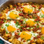 This Crispy Beef Bacon & Egg Breakfast Skillet delivers everything you love about a warm, satisfying morning meal in one easy pan. With golden potatoes, perfectly cooked eggs, and flavorful beef bacon, it strikes the ideal balance between hearty and convenient. Whether you make it for a relaxed weekend brunch or a simple weeknight breakfast-for-dinner, this skillet is sure to become a comforting go-to recipe you’ll enjoy again and again.