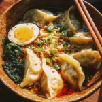 A warm bowl of dumpling ramen is the kind of dinner that feels like a hug: pillowy frozen dumplings, slurpy instant noodles, a fragrant soy-sesame chicken broth, bright spinach, and a soft-baked egg with a runny yolk. It’s fast enough for a weeknight but cozy enough for a rainy Sunday. If you love comforting soups—think along the lines of timeless, soothing bowls like Grandma’s Chicken Soup, the ultimate comfort in a bowl—this dumpling ramen will quickly become a go-to.