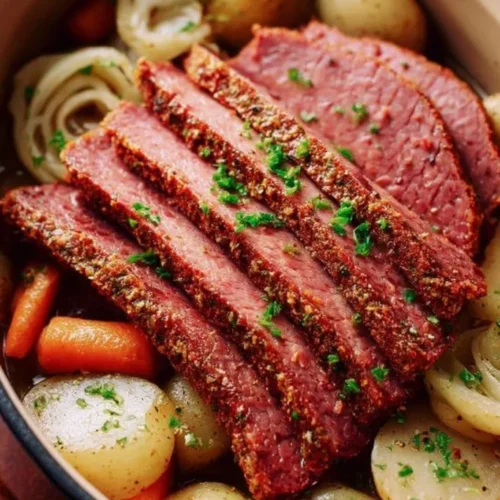 This Dutch oven corned beef is forgiving, low-effort, and deeply satisfying. A 4–5 lb brisket braises gently until fork-tender, turning pantry staples—onion, carrots, potatoes—into a complete meal. It’s perfect for family dinners, make-ahead weekend feasts, or when you want food that feels celebratory without fuss.