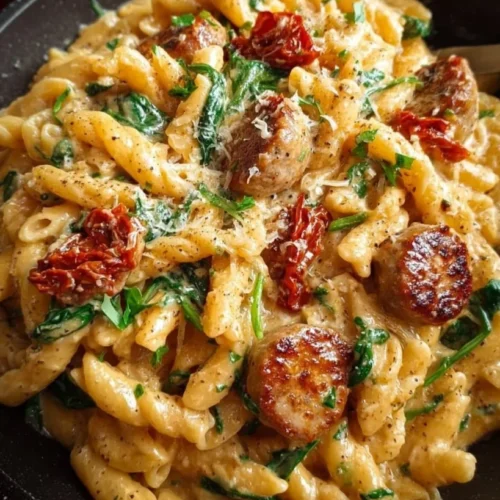 The method is straightforward: brown the sliced sausage, soften aromatics, build flavor with sun‑dried tomatoes and spices, then cook pasta right in chicken broth so it absorbs flavor. Finish by stirring in cream, Parmesan, and spinach, return the sausage, and heat through. The entire process takes about 25–30 minutes from start to finish.