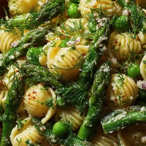 A vibrant and refreshing pasta salad packed with asparagus, peas, and a zesty lemon dill vinaigrette, perfect for springtime meals and gatherings.
