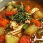 This hearty chicken and vegetable stew is the kind of bowl that makes a cold evening feel like a warm hug. Tender shredded chicken, soft carrots and potatoes, bright peas, and a tomato-thyme backbone come together in a savory broth that’s simple enough for a weeknight but comforting enough for company. If you enjoy classic, brothy comfort—think cozy bowls like grandma’s chicken soup—this stew hits the same notes with a little more body and a touch of garden herbs.