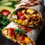 A hearty, protein-packed breakfast that holds up for busy mornings — this High-Protein Breakfast Burrito combines scrambled eggs, extra egg whites, shredded chicken, black beans, and a little cheese wrapped in a large whole wheat tortilla. It’s built to fuel long shifts, workouts, or a fast family brunch without sacrificing flavor.