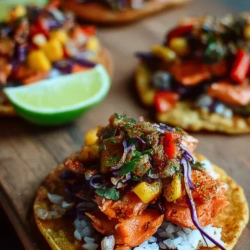 “Bright, bold, and ridiculously easy — jerk salmon tostadas became an instant family favorite. The coconut rice softens the spice and the crunch keeps every bite interesting.” — a quick diner-style review