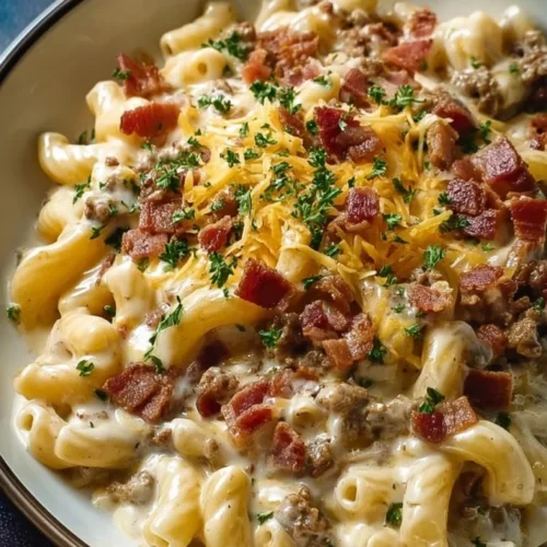 This Loaded Bacon Cheeseburger Alfredo Pasta is everything you want when cheesy comfort food and a backyard burger collide in one skillet. It layers creamy Alfredo with browned beef, crisp bacon, sharp cheddar and an unexpected crunch from chopped pickles — making weeknight dinners feel like a celebration. If you want a smoky, veggie side, try serving it with a tray of crispy bacon Brussels sprouts for a matching flavor profile.