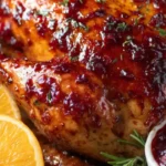 Bring a burst of festive flavor to your dinner table with this Orange Cranberry Glazed Holiday Turkey. It’s everything a holiday centerpiece should be: tender, juicy meat coated in a glossy glaze that combines the tang of cranberries with the bright citrus of orange. This holiday turkey recipe is both elegant and approachable, ideal for Thanksgiving, Christmas, or any special gathering. The aroma of roasted herbs, citrus, and caramelized glaze will fill your kitchen with warmth and anticipation.