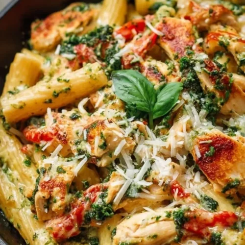 This recipe hits a lot of home-cooking sweet spots: it’s fast, crowd-pleasing, and stores well for leftovers. The combination of pesto and cream gives a verdant, silky sauce that clings to tube pasta; chicken adds protein; roasted tomatoes bring a little acidity to cut the richness. It’s the kind of dinner that feels special but doesn’t require specialty skills or hard-to-find ingredients.