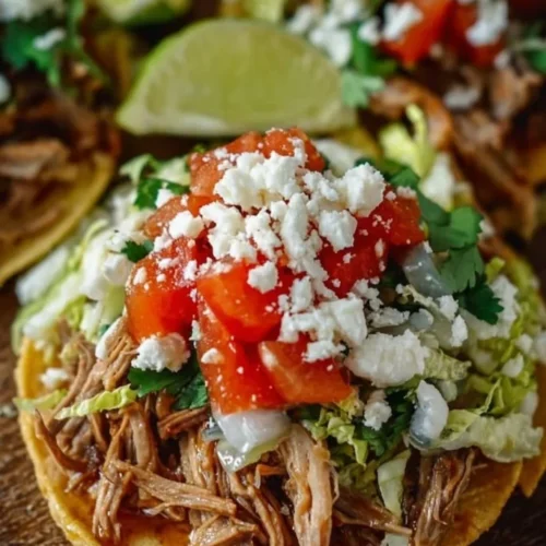 This is a bright, crunchy taco-night winner: tender guajillo-braised pork piled on crisp tostada shells with creamy refried beans, fresh shredded lettuce, tangy salsa, crunchy raw onion, and crumbly queso fresco. It’s the kind of meal that works for a busy weeknight, a weekend cookout, or when you want something that feels homemade but comes together with mostly pantry-friendly ingredients. If you like pork prepared several ways, you might also enjoy this alternative technique for baked pork tenderloin for a lower-attention finish.