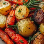 Roasted baby potatoes and carrots tossed with rosemary and thyme until caramelized and fragrant — simple, comforting, and endlessly useful. This recipe turns pantry staples into a golden, slightly crisp vegetable side that works any night of the week, from busy weeknights to holiday spreads. It’s one of those dishes I make when I want something fuss-free that still feels special.