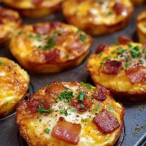 This dish is a savory, oven-baked egg muffin made by whisking eggs with salt and pepper, folding in crumbled cooked bacon and shredded cheddar, then baking in a muffin tin until set. The texture is soft and custardy inside with lightly golden tops and crisp pieces of bacon throughout. It’s prepared in a standard oven (baked at 350°F/175°C) and typically served warm for breakfast, brunch, or a simple weeknight breakfast-for-dinner. The overall vibe is cozy, comforting, and unfussy — a classic go-to for anyone who wants a protein-packed, handheld meal without a lot of dishes.