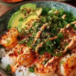 A bright, quick bowl that hits hot, creamy, and crunchy all at once — these Shrimp Rice Bowls with Spicy Mayo are the kind of weeknight dinner that feels special without a lot of fuss. Plump shrimp seared with smoky paprika and garlic powder sit on a bed of jasmine or brown rice, topped with sliced avocado, shredded carrots, crisp cucumber, and a silky sriracha-mayo that brings the whole bowl together. Ready in about 20 minutes, it’s one-pan cooking with big flavor.
