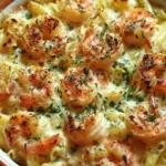 This recipe balances speed and flavor. You get the bright, acidic lift from lemon, the deep savoriness of Parmesan and butter, and the tender pop of large shrimp — all baked into a pasta casserole that’s both elegant and simple.