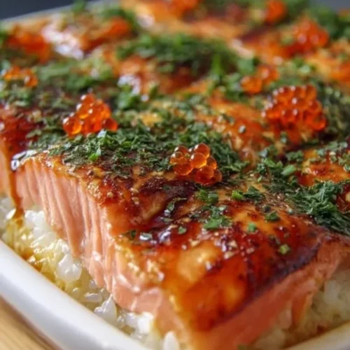 - Spicy crab: swap half the salmon for imitation crab or fresh crab meat for a California-roll-inspired bake.