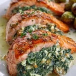 Salmon that’s creamy, savory, and studded with bright spinach — this stuffed fillet feels a little special but comes together quickly enough for a weeknight. The pocketed salmon holds a rich filling of cream cheese, Parmesan, and garlic that keeps the fish moist while the outside gets a quick sear and a short bake for a tender, flaky finish. If you like dinner that looks plated but doesn’t require hours, this is the one to keep in your rotation.