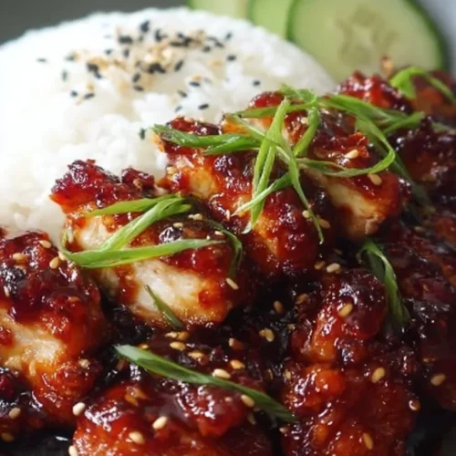 This dish is boneless, skin-on chicken thighs coated in a sticky glaze made from gochujang paste, honey, rice vinegar, soy sauce, sesame oil and fresh garlic. The taste is sweet at first, then savory and tangy with a mellow, spicy undertone from the gochujang — not overpowering but clearly present. Cooking methods are flexible: pan-sear and finish in the oven, or grill for a charred smoke. It’s typically served as a comforting weeknight entrée but holds up well for casual dinner parties or meal prep. The overall vibe is cozy and bold — comfort food with a bright Korean-inspired twist.