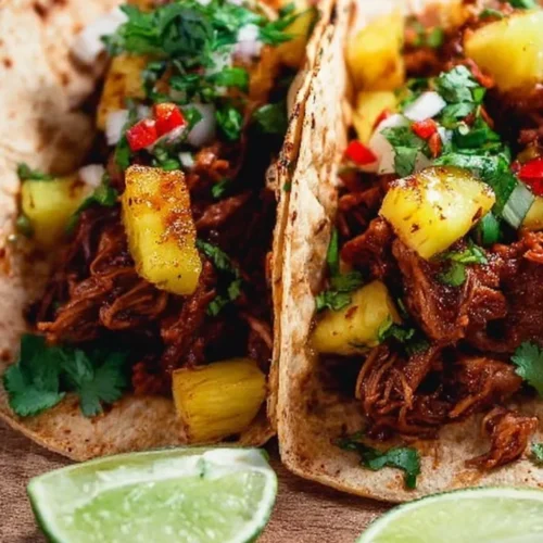 - Slow-cooker version: Use the same marinade, cook pork shoulder low 6–8 hours until fall-apart tender, then shred and mix with charred pineapple.