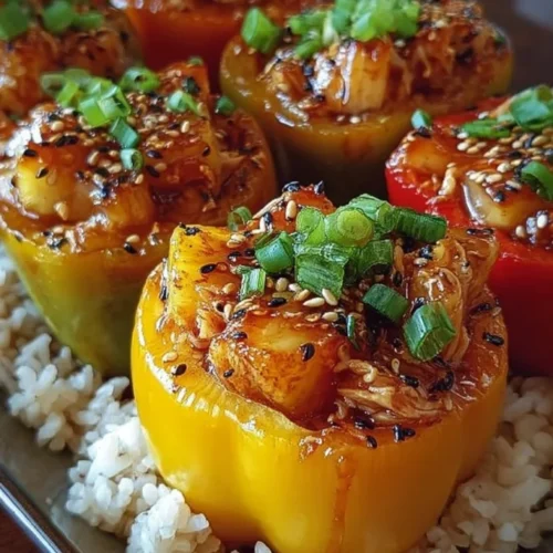 A delightful blend of sweet pineapple, tender chicken, and savory teriyaki sauce stuffed into roasted bell peppers, perfect for a weeknight meal.