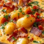 This creamy, cheesy Bacon Cheddar Gnocchi Soup is a comforting dish that combines smoky bacon, pillowy gnocchi, and rich cheeses for a satisfying meal.